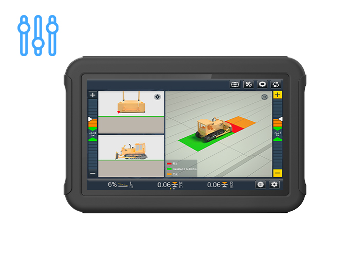 Intuitive software for quick learning curve The software runs on a 10.1" industrial color display for optimal readability in job site environments. It supports standard AutoCAD DXF design files, including surfaces, slopes, TINs, and road features, to manage all common grading operations effectively. It's intuitive software enhances the machine operator's experience, even for those with less experience, in every way possible to complete projects quickly and accurately. Several user-defined configurations can be set up to define the working parameters of the site and make the operator's job simpler and easier.