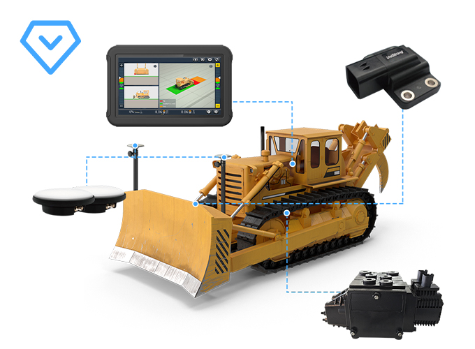 The Newdi UBS500 automatic 3D Control System for Bulldozer improves the quality and efficiency of operations. The high-precision dual-GNSS positioning system and inertial sensor featuring the GRTech technology provide reliable 3D positioning and heading to control the dozer blade, regardless of the machine's position. Real-time automatic control of the dozer blade to the design surface allows finished accuracy to be achieved in less time and increases efficiency and productivity by eliminating the need for manual staking.